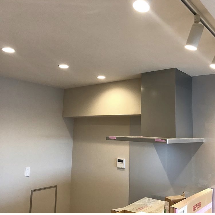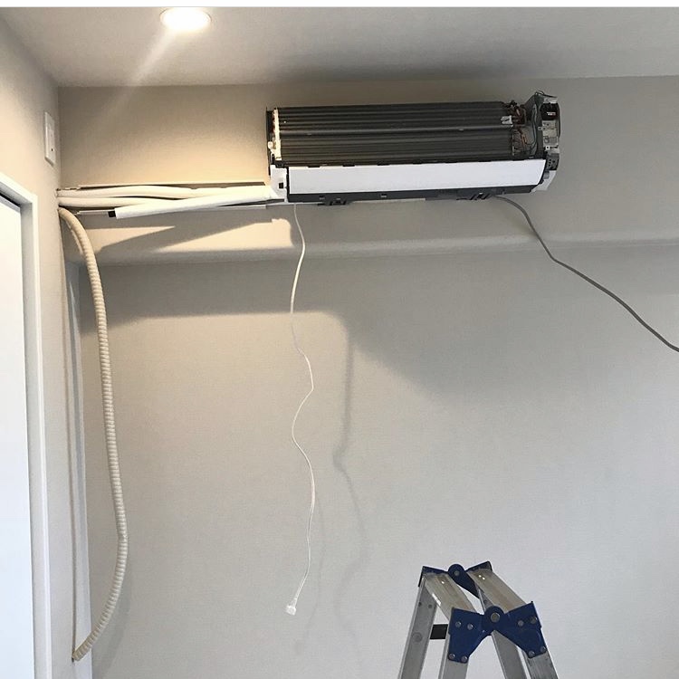 今日は、北越谷のマンションリノベーション現場にて、器具付け、エアコン2台の取り付けを行いました。